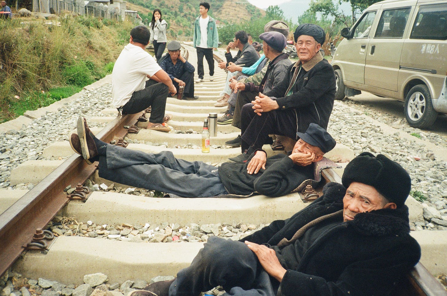 The boy was only 19 as it turns out, working as a firefighter in Shaanxi province on the other side of the country. He had made the journey back to his village after hearing the news that his father’s condition had worsened, and as we climbed towards his home he told me he had passed the previous night. I couldn't quite remember what the right thing was to say in Chinese, only that to say “I'm sorry” as you might in English would be to admit culpability for the death of his Dad, something I was keen to avoid. I eventually chose 别太难过 bie tai nan guo something like “don’t be too sad”, which felt deeply inappropriate to me and yet soothing somehow to him. The family lived in a nest-like collection of houses, an ant-hill built haphazardly into the hillside. Like the farmer, each building clearly came from a different era, expanded upon as time passed, the compound wall knocked down and re-erected with each expansion. They had expanded as far as the train tracks permitted, now so far that the tracks ran directly though the driveway. We arrived to a collection of men, scattered much like the goats, but this time on red plastic stools surrounding round tables, others perched in squats on the train tracks like birds strung on a telephone wire. When I introduced myself, feeling underdressed in cycling lycra as per usual, I had to speak up to be heard over the desperate squealing of a pig. The noise growing into a violent crescendo before the small stream that runs down from the house and past our feet darkened in colour until it ran deep red.