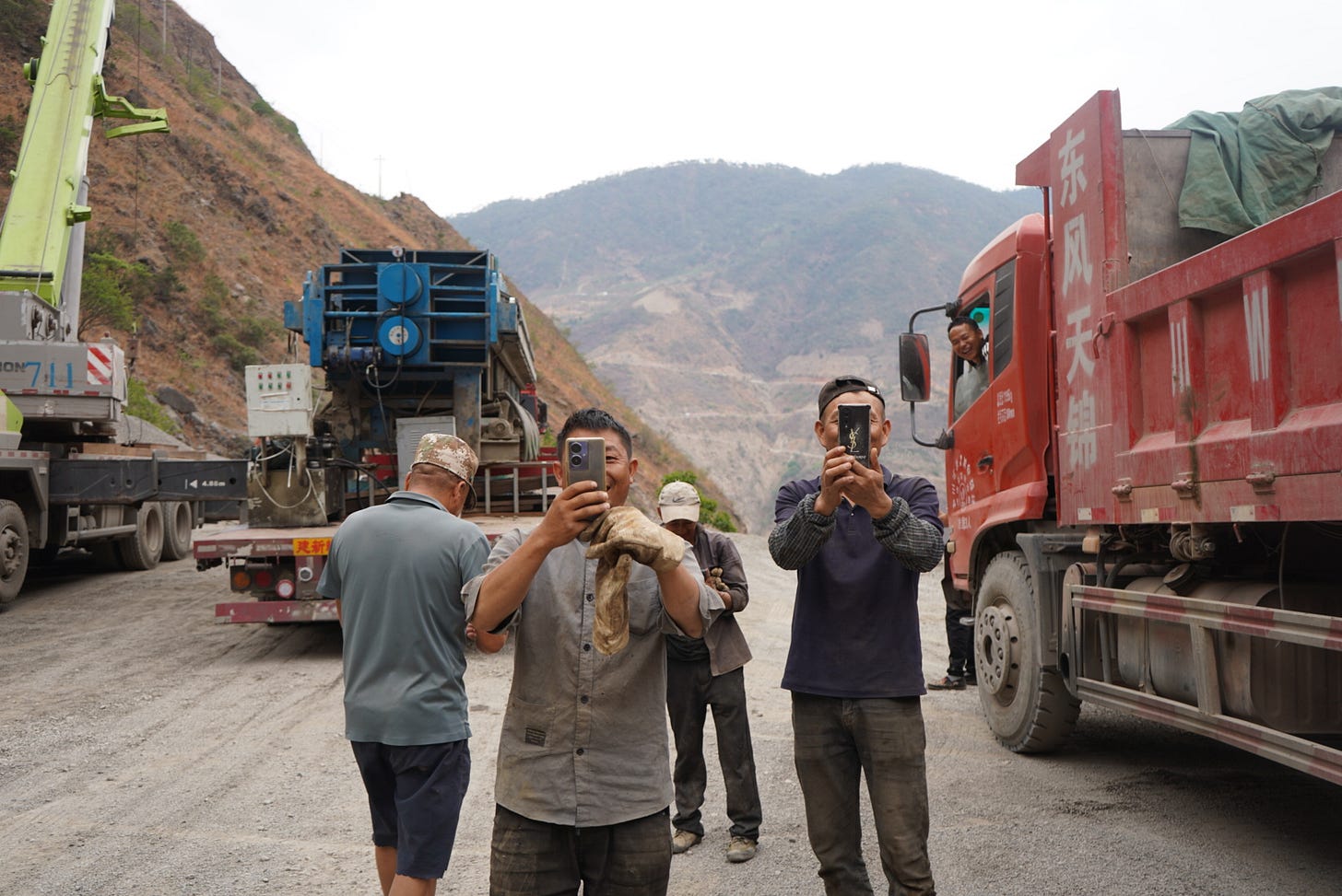 Fig 10. Henanese construction workers reinforcing the hillside surrounding a tunnel in Sichuan.