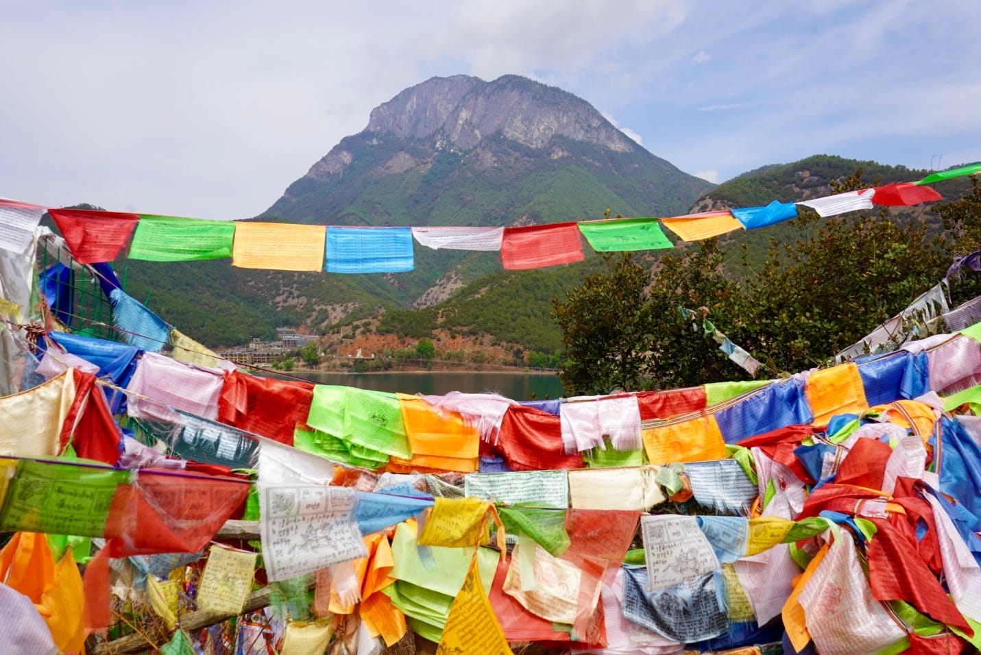 Fig 6. Photo taken from the shores of Lugu Lake looking back towards Gemu Goddess Mountain.