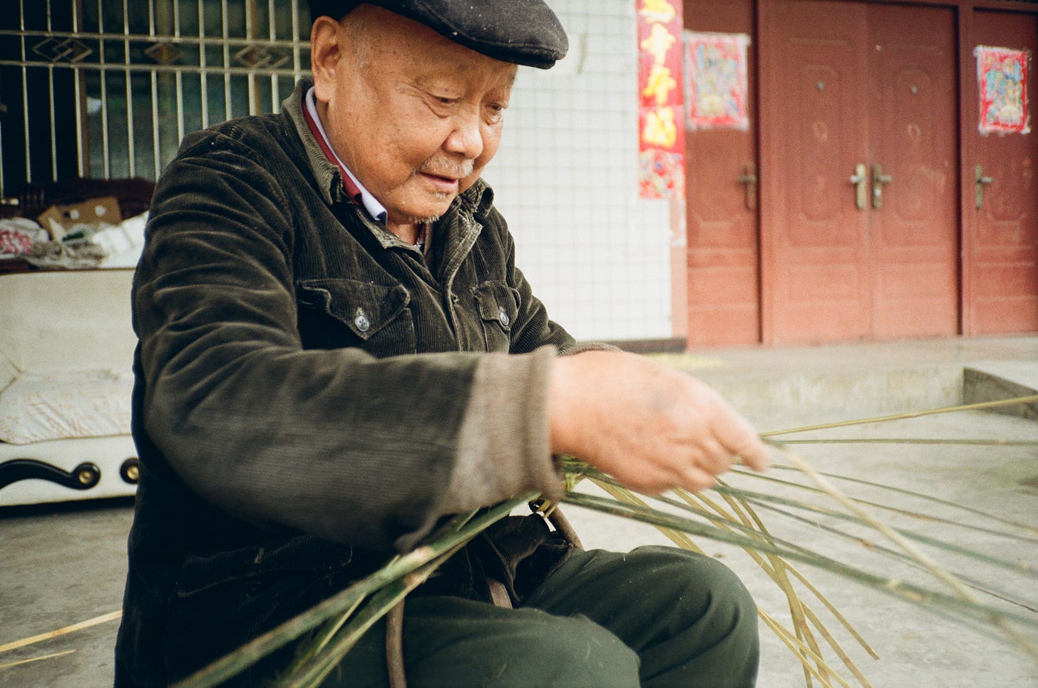 When I got the first flat tire on my second day it was the first flat I had ever had to change alone. I was in a village outside of Leshan on the way to Ebian. The rain had started, as it did for each of the first 6 days of the trip, and so I pulled into a driveway where an old man sat on his porch weaving a basket from strips of bamboo. We never spoke but I did my work and he did his.